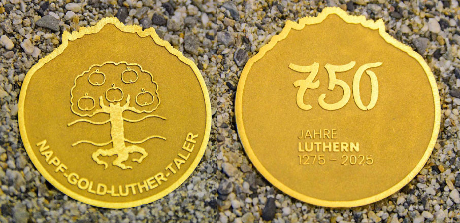 Zum Dorfjubiläum 2025 liessen sich mehrere Gewerbetriebe etwas Besonderes einfallen. Sie verwirklichten vereint die Idee, mit 26 Gramm “Luthern-Gold” einen einzigartig geformten Luther-Taler mit dem Wappen von Luthern zu prägen.