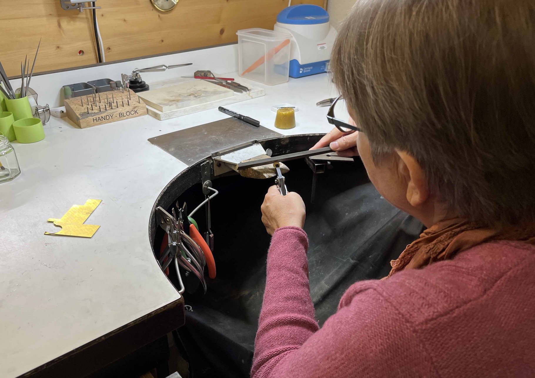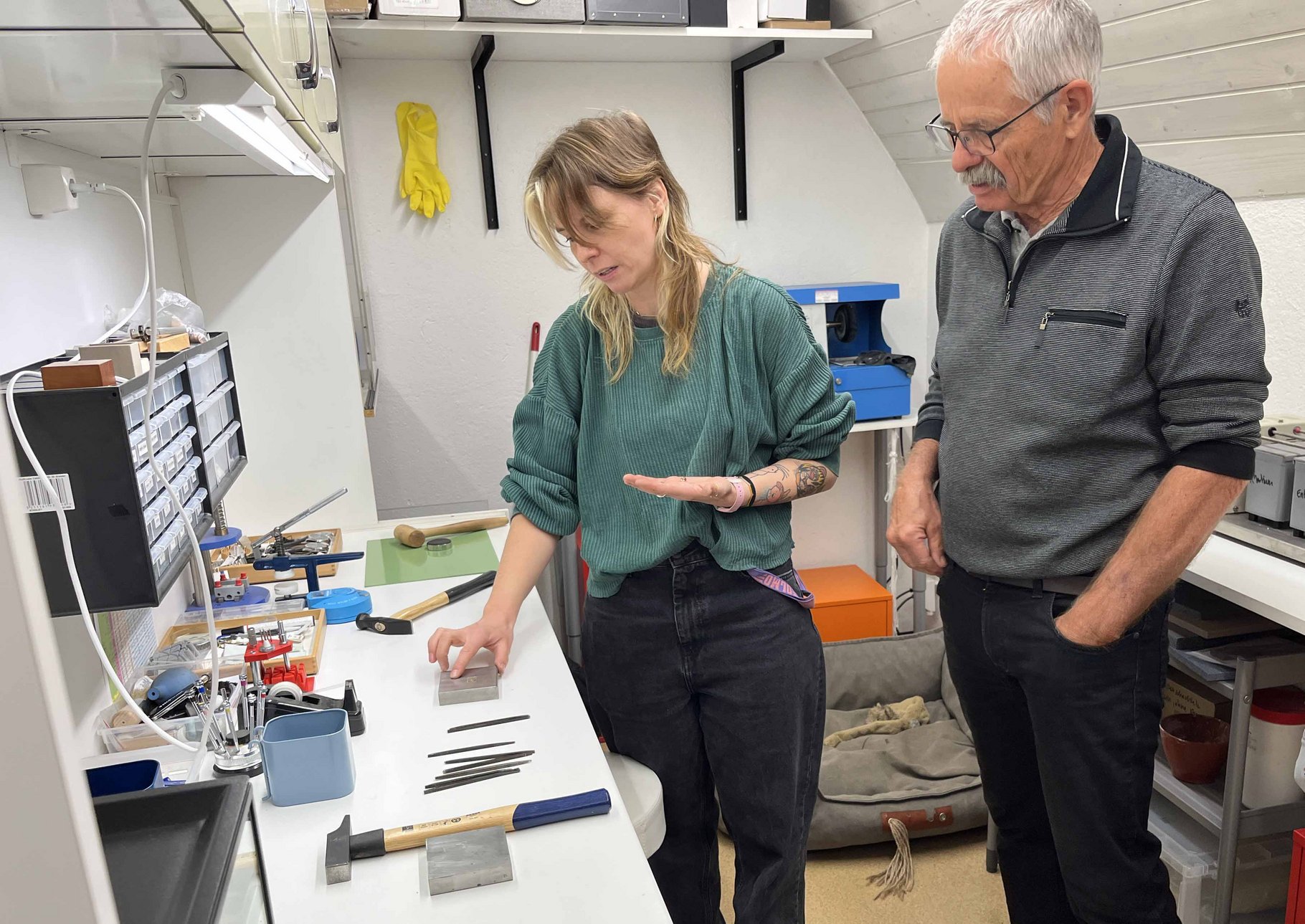 Im Goldschmiedeatelier von Simone Aebersold in der Burgdorfer Oberstadt erhielten die Teilnehmenden schliesslich Einblick in die Arbeit einer Goldschmiedin. Zum Abschluss durften die Besuchenden selber ihre Fähigkeiten an der Werkbank auf die Probe stellen und ein kleines Erinnerungsstück schaffen und mit nach Hause nehmen.